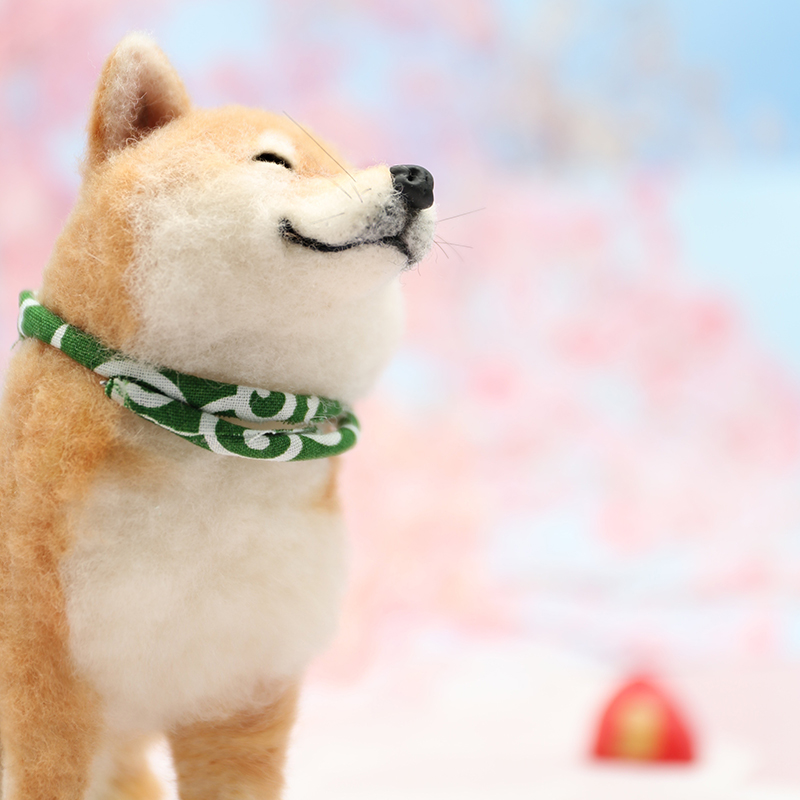 首元の和風スカーフがアクセントとなり、和モダンな雰囲気を演出します。犬ぬいぐるみコレクションの中でも、この柴犬ぬいぐるみは癒し効果抜群。