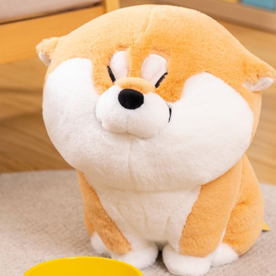 ころんとした丸いフォルムと愛らしい笑顔が魅力の柴犬 ぬいぐるみです。