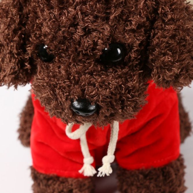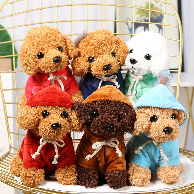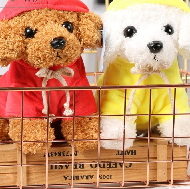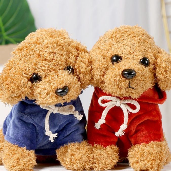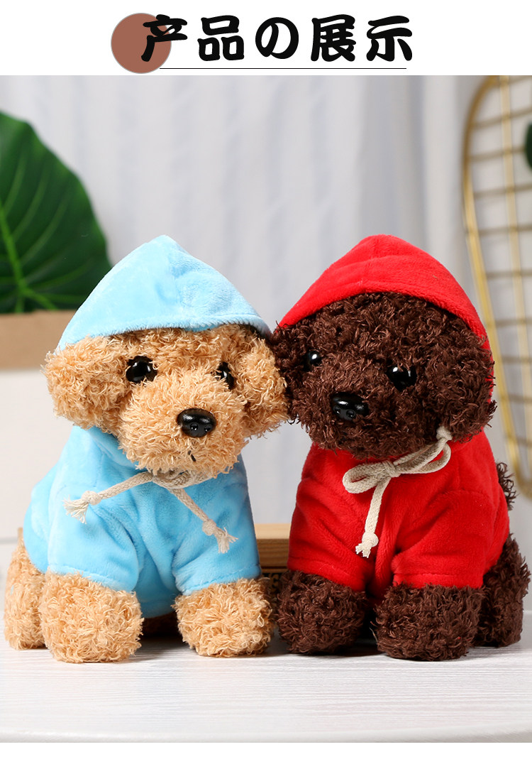 可愛らしいパーカーを着たトイプードル ぬいぐるみです。