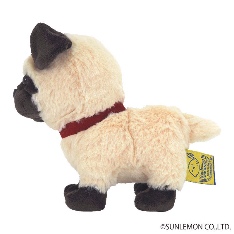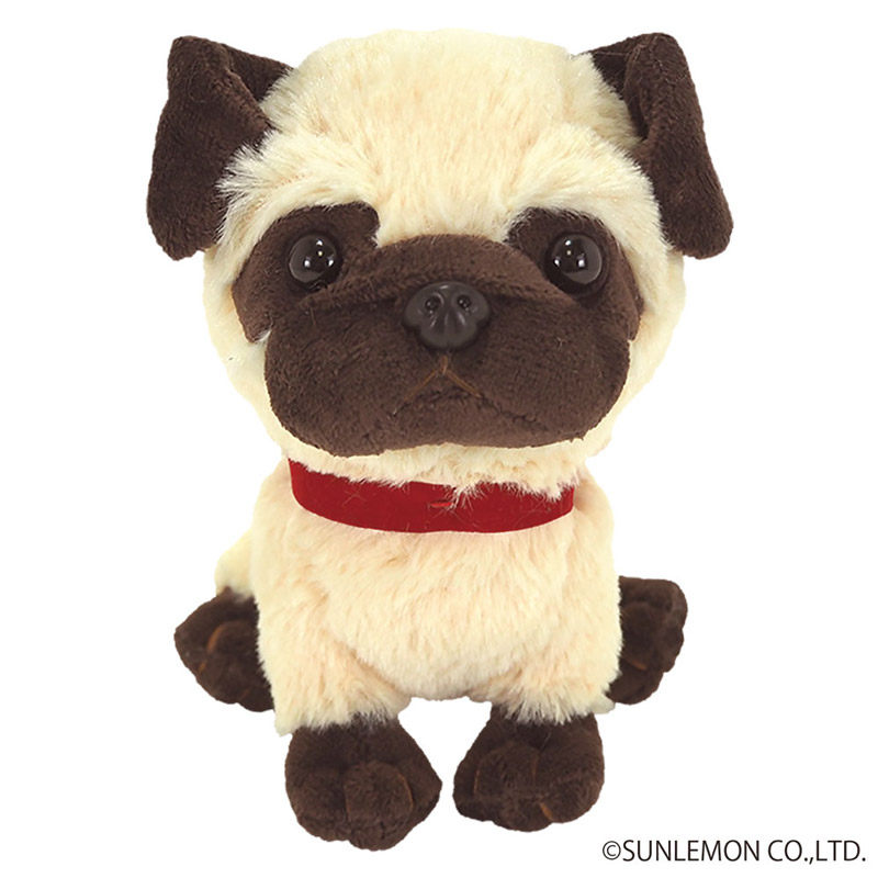つぶらな瞳と短い鼻筋が愛らしいパグ ぬいぐるみです。