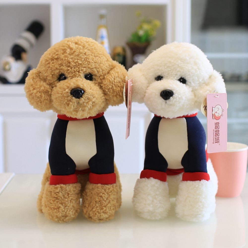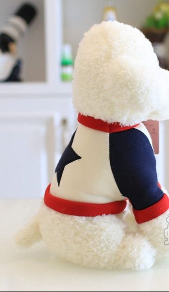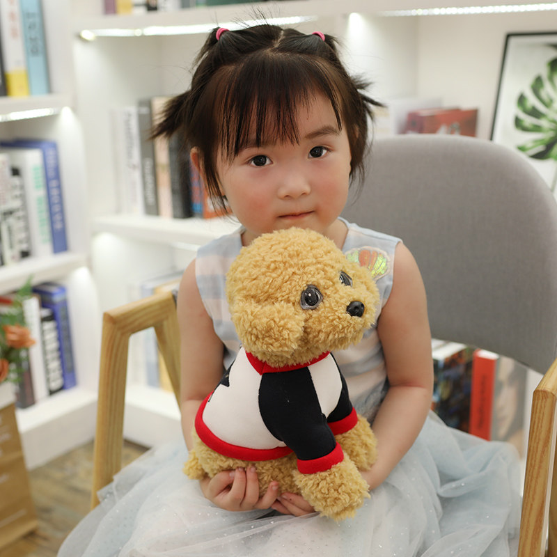 おしゃれな洋服を着てお座りポーズをした姿が特徴的で、つぶらな瞳とぷっくりした鼻が本物のような可愛らしさを演出しています。